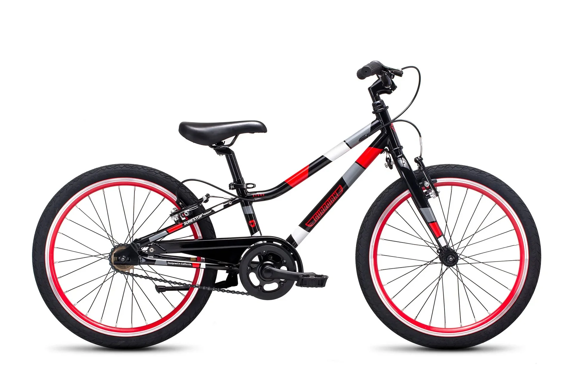 For the age group of 5 to 8 years this bike comes in a raging red black color and in addition three more cool color combos. Showcasing the kid specific geometry, the ride ha light weight steel frame and 1-speed with a single lever hand brake. A smooth, small frame ride that has training wheels compatibility to help your kid grow.