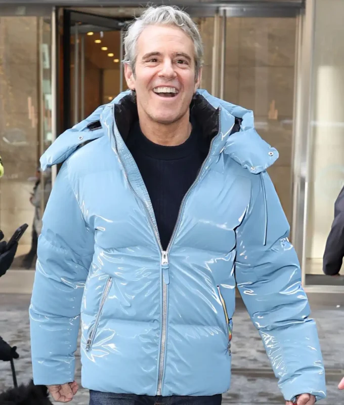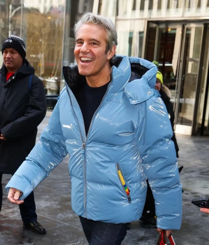 Andy Cohen SirusXM NYC 2026 Sky Blue Puffer Jacket: Winter Fashion Inspiration