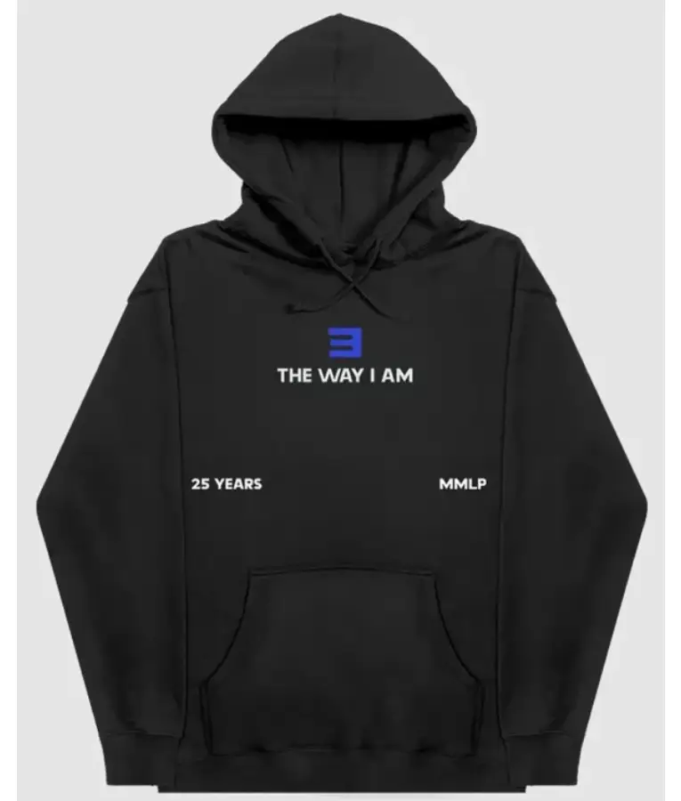 Eminem MMLP25 “The Way I Am” Hoodie – Black with Blue E Logo and 25-Year Tribute