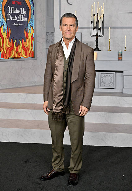 Veteran actor Josh Brolin looked sharp in a tailored three-piece suit. He added luxurious bohemian accessories that gave his classic look a stylish twist. His outfit included an olive green jacket and matching trousers, a dark fitted waistcoat, and a cream-colored shirt.