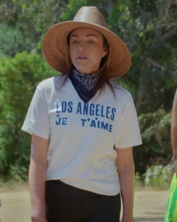 Christa Miller’s “Los Angeles Je T’aime” tee combines comfort, modern minimalism, and chic flair. Additionally, the tee reflects Liz’s iconic charm with understated elegance inspired by Season 3, Episode 9. Just Like Dua Lipa Outfits. Fans of Shrinking and trend-conscious shoppers embrace this tee as a stylish wardrobe addition.