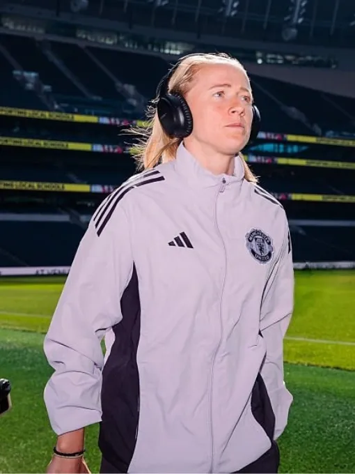 Are you searching for a performance jacket that blends athletic function with standout style? Then, the Lea Schuller Barclays Women’s Super League 2026 jacket delivers exactly that balance. Notably, Lea Schuller of Manchester United wore it upon arriving at Tottenham Hotspur Stadium. She appeared there on April 26, 2026, showcasing elite-level sportswear with modern fashion appeal. Moreover, designers crafted this track jacket in a soft yet striking light lavender lilac shade. As a result, it stands apart from typical training gear with a fresh, stylish identity. In addition, the dual-toned color block design enhances its bold and modern appearance. Sleek black panels run along the sides and underarms, creating a dynamic silhouette. Consequently, the design offers a slimming effect while supporting both performance and casual wear.