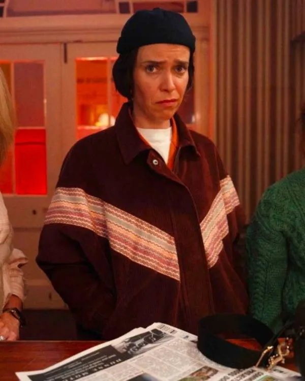 The Jacket reflects creative storytelling and vintage-inspired fashion, you can shop at The Celeb Jackets. In the series How to Get to Heaven From Belfast, Caoilfhionn Dunne highlights this distinctive jacket on screen. First, the jacket features rich corduroy fabric that adds texture and visual depth. Moreover, detailed chevron embroidery enhances its artistic and vintage-inspired appearance. Additionally, the oversized fit provides relaxed comfort and effortless styling. Therefore, the jacket stands out as a unique and eye-catching wardrobe piece. Furthermore, fans of the show appreciate its strong connection to the character’s style. Likewise, fashion enthusiasts value its bold design and retro aesthetic. Consequently, this jacket delivers character, style, and everyday comfort in one piece. Thus, it offers an ideal choice for fans and lovers of distinctive outerwear.