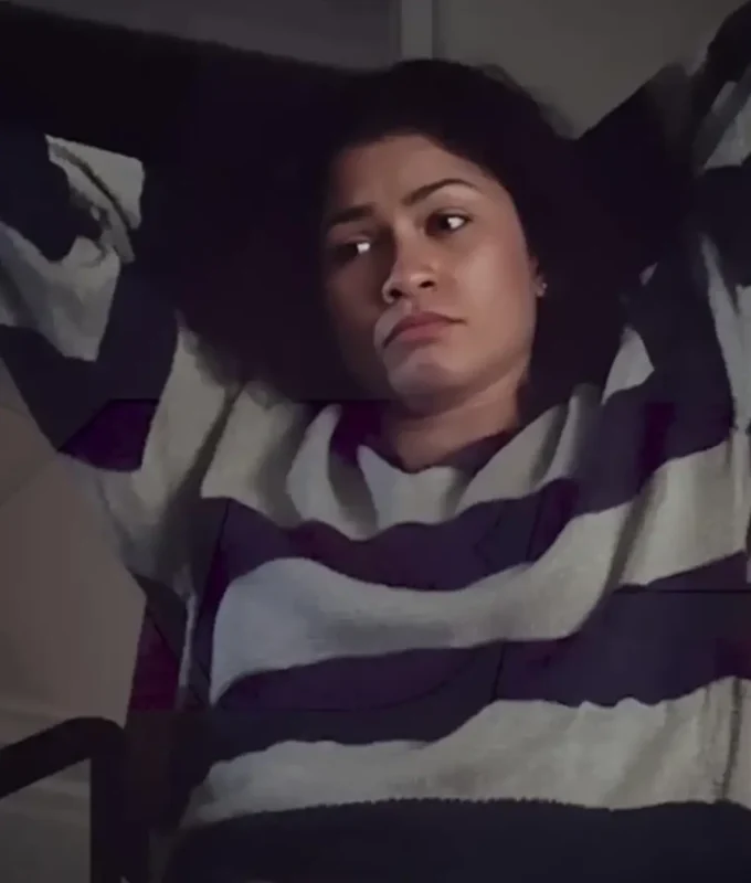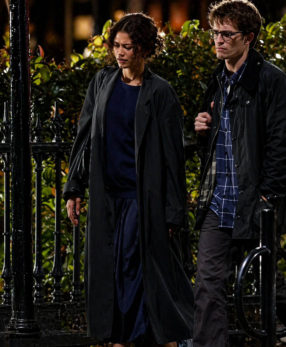 Zendaya portrays Emma Harwood in The Drama (2026), revealing a hidden emotional depth. At first, Emma appears secure in her relationship with Charlie, yet tension slowly builds beneath the surface. However, everything shifts when she confesses a disturbing secret during a revealing party game. She admits she once planned a school shooting but never acted on it. As a result, Charlie begins questioning everything he thought he knew about her. Meanwhile, her plaid shirt subtly reflects this emotional complexity through its muted visual design. The pattern displays a classic checkered layout in slate blue and off-white tones. Additionally, darker grey lines create a soft windowpane effect across the fabric.