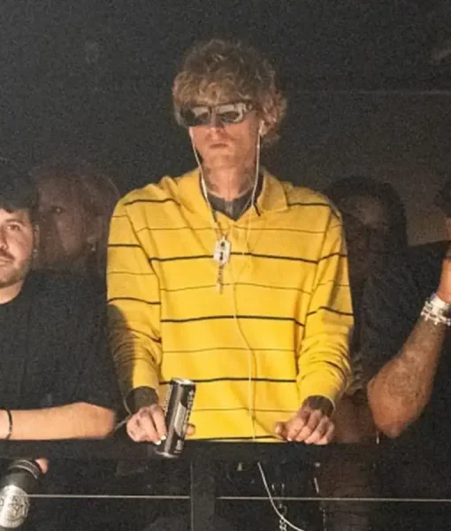 The Machine Gun Kelly The League Yellow Stripe Sweatshirt stands out as a striking blend of retro athletic design and modern street fashion. Worn by Machine Gun Kelly alongside SlimXX at The League X Blem event in Los Angeles on August 28, 2025, this eye-catching outfit quickly became a talking point. Much like his E11EVEN Miami white t-shirt appearance, Just Like Lewis Hamilton Outfits. this look reinforces his bold and expressive fashion identity.