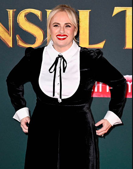 At the premiere, Rebel Wilson chose a long black skirt. The skirt’s rich texture, probably velvet, added subtle sophisticated charm. She paired the black ensemble with a matching top jacket. The combination created a dramatic, timeless, and effortlessly elegant aesthetic.