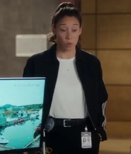 The bomber black jacket draws inspiration from the series. Furthermore, it reflects Sarah Truong’s polished and confident on-screen appearance. Designers based the look on Mayko Nguyen’s character styling choices. Notably, the jacket appears in Seasons 7 and 8 of the series. Therefore, it blends professional workwear with sporty aesthetics effectively. Consequently, people wear it for fandom expression and everyday styling. Designers created this jacket as a full-zip track-style outerwear piece. As a result, it delivers a structured and uniform-inspired appearance. Unlike baggy styles, the jacket features a slim tailored fit. Thus, it contours neatly and enhances the body’s natural shape. Additionally, the matte black tone creates a clean and versatile base. Moreover, the pointed fold-over collar adds a refined, sophisticated touch. Therefore, it stands apart from ordinary athletic jackets easily.
