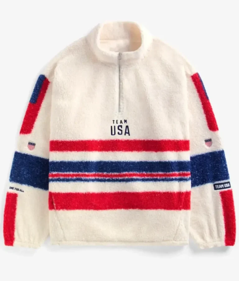 Team USA 2026 Patriotic Stripes Zip Pullover – Cozy Oversized Sherpa Jacket