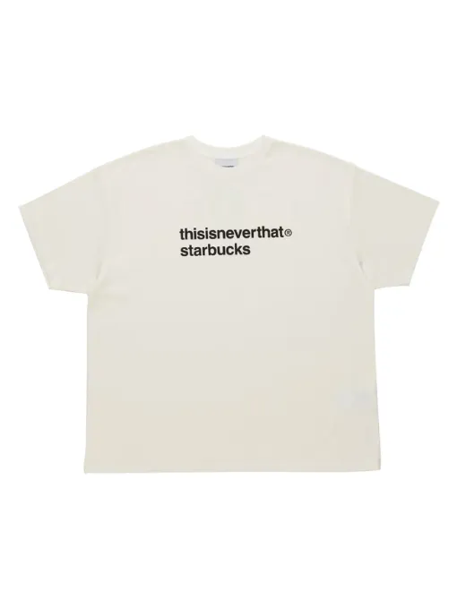 The White T-shirt perfectly captures the “less is more” concept while blending modern streetwear with café culture. First, the off-white cream base creates a refined and highly versatile look for everyday wear. On the front, designers place a centered graphic featuring the thisisneverthat® logo above the Starbucks wordmark. Moreover, they use bold, lowercase sans-serif typography to build a clean and contemporary visual identity. In addition, the print appears in black or deep forest green, enhancing contrast against the soft base tone. As a result, this color balance keeps the design minimal while still feeling visually interesting and fresh. When it comes to fit, the T-shirt features a relaxed, boxy silhouette for modern streetwear appeal. Specifically, it includes a ribbed crew neckline that adds structure and maintains the shirt’s overall shape. At the same time, short, wide sleeves provide a laid-back and comfortable feel. Overall, the loose fit makes it easy to style for both casual and elevated outfits. Meanwhile, the back design introduces a subtle yet eye-catching detail below the collar. A circular Starbucks Siren logo appears in vibrant green, adding depth without overpowering the clean aesthetic. Finally, available in off-white and black, this T-shirt works perfectly for both dressed-up and casual looks.