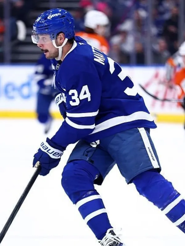 Auston Matthews showcases a standout Toronto Maple Leafs look. Fans notice the iconic jersey worn by their captain. Style enthusiasts admire the jersey’s blend of performance and fashion. The piece combines team pride, street-style, and sporty appeal.