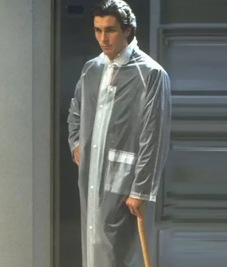Christian Bale American Psycho Transparent Raincoat with White Collar & Placket