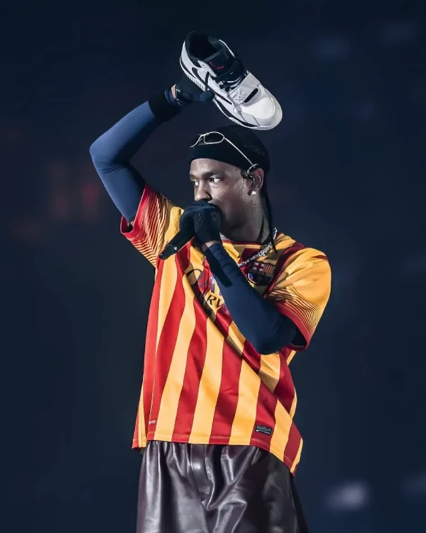 Travis Scott SHIT GOING DUMB Striped T-Shirt debuted during Circus Maximus Tour Doha 2025 in 2025. Moreover, it reflects Travis Scott’s evolving performance identity. Additionally, the design draws inspiration from his Utopia promotional era. As a result, it blends high-energy stage presence with bold streetwear culture. Furthermore, fans instantly connect its football-inspired styling with music-driven aesthetics.