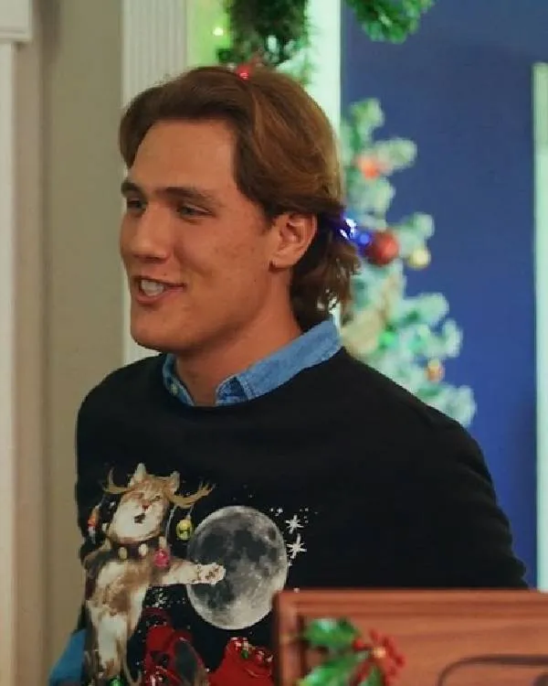 If you’re looking for a festive yet fashion-forward winter piece, consider the A Royal Icing Christmas Callum Buckley Cat Graphic Sweater. Inspired by A Royal Icing Christmas, this sweater reflects Callum Buckley’s effortless charm as Luke, the romantic lead. Moreover, the design blends classic style with a modern edge, making it instantly appealing. At the same time, it captures Luke’s warm, sophisticated personality while staying practical for everyday wear. Additionally, the timeless black and white palette creates a bold, confident look. As a result, you can style it easily for casual outings or slightly dressed-up occasions.