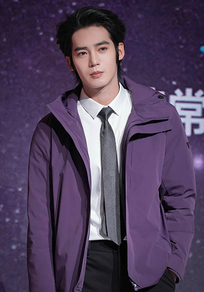 Yu Shi wore a polished deep purple shell jacket confidently. The rich color created instant attention with its smooth design. The dark aubergine shade added depth to his overall look. The jacket stood out subtly without appearing overly loud. It suited the sophisticated atmosphere of the fashionable Septwolves event.